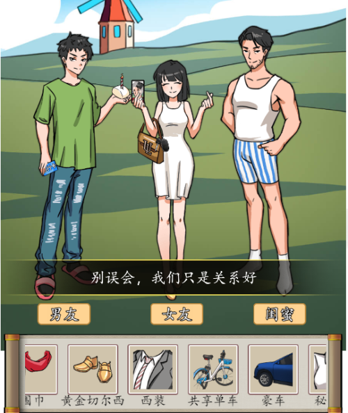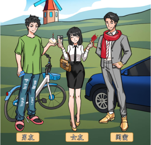 1、男友:T恤牛仔裤、馒头、工资卡、共享单车、女式拖鞋。