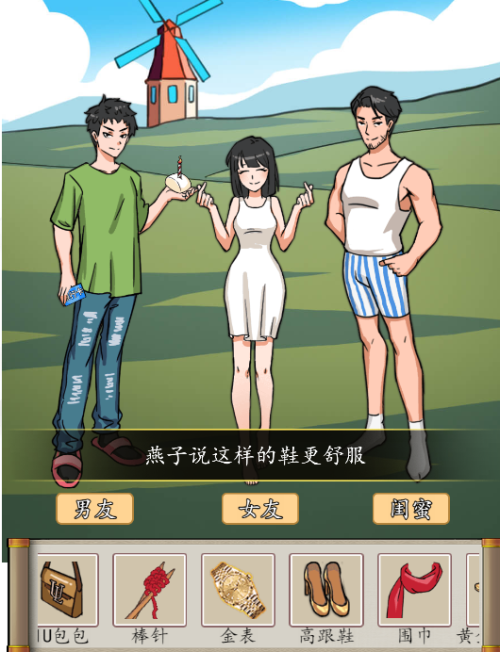 2、然后女友:高跟鞋、 LU包包、棒针、职业装、车钥匙、手机。